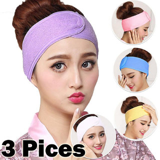 Know More3 Pieces Facial bands: - its no fun leaving the salon with greasy hair and your style all messed up, you may be feeling great but your hair may have seen better days. These plain Velcro cosmetic headbands keep all hairstyles clean and out of the way of tanning creams, waxes and facial treatments, so you will leave the spa looking as dazzling as you feel, making them great for the person who doesn't want to get their hair coated in treatment oils. Whether long-haired or short, curly or straight, these non-slip terry cloth headbands with Velcro will stay in place, allowing you to lie back and take it easy while you enjoy a great facial treatment. No stress. Stretchable for a comfortable fit and machine washable to reuse. These two facial bands made of microfiber will keep everything neat and tidy for many trips to the salon. This terry cloth spa headband is part of mall stock because of its quality but also its versatility. Want to keep your hair away while putting on makeup, turn to mall. Hate your fringe falling in your eyes while out running, turn to mall. You'd really like to keep as much of your hair dry while in the shower, turn to mall look sporty without doing the exercise. Give the appearance that you really take care of yourself whilst heading to the bakery for cakes. These facial headbands will absorb all the sweat you can give it while paying for those expensive chocolate clairs and then you can run it off at the treadmill later wearing the same hair band. Classy, sporty, and with an air of mystery. Size fits all, high-end quality, well packed. Best for spa and makeup.