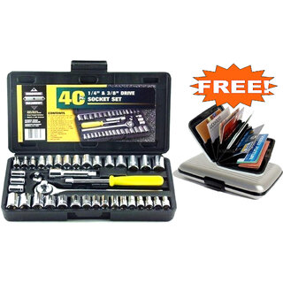Know More40 Pcs Combination Socket Toolkit with Free Aluminum Credit Card Holder