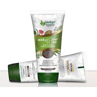 Know MoreAadya Care Face Scrub Gentle face scrub infused with natural herbs, essential oils and walnut shell fibers that exfoliates skin and reduces uneven tone, works on blackheads, removes dead skin and excess oil, cleanses pores and makes skin brighter and radiant. Aadya Care Face scrub exfoliates skin, thus helps to unclog pores and prevent skin conditions such as acne, melasma and discoloration. It is a blend of natural oils and herbal extracts. It is suitable for all types of skin. Aadya Care face scrub is a Sulphate free, and Paraben free product which gently exfoliates skin, removes dead skin and excess oil without damaging skin. Direction for Usage: Gently apply scrub in circular motion and massage for 3-4 minutes to exfoliate dead skin and wash the area with fresh water. Avoid direct contact with eyes.