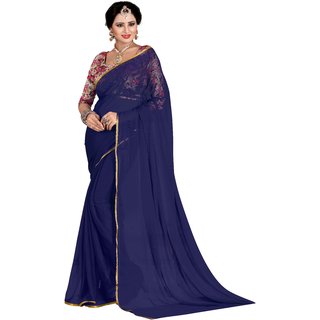 Know MoreAAR VEE Navy Blue Color Nazneen Plain Saree With Bhagalpuri silk Printed Unstitched Blouse 4GM04