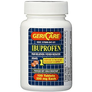 Active Ingredients . Ibuprofen 200mg . . . . Pain reliever/fever reducer. . Uses . Temporarily relieves nor aches and pains due to:. - Headaches. - Toothaches. - Muscular aches. - Menstrual cramps. - The common cold. - Backache. - nor pain of arthritis. - Reduces fever. . Warnings. Allergy alert: Ibuprofen may cause a severe allergic reaction which may include :. - Hives. - Facial swelling. - Asthma (wheezing). - Shock. . Alcohol warning:. If you consume 3 or more alcoholic drinks every day, ask your doctor whether you should take ibuprofen or other pain relievers/fever reducers. Ibuprofen may cause stomach bleeding.. Do not use: if you ever had an allergic reaction to any other pain reliever/fever reducer.. . Ask a doctor before use if you have:. - Stomach pains. - Problems or serious side effects from taking pain relievers or fever reducers. . Ask a doctor or pharmacist before use if you are:. - Under a doctors care for any serious condition. - Taking any other drug. - Taking any other product that contains ibuprofen, or any other pain reliever/fever reducer. . When using this product give with food or lk if stomach upset occurs.. . If pregnant or feeding, ask a health professional before use. It is especially important not to use ibuprofen during the last 3 months of pregnancy unless definitely directed to do so by a doctor because it may cause problems in the unborn child or complications during delivery.. . Keep out of reach of children. In case of overdose, get medical help or contact a Poison Control Center right away.. . Overdose Warning: Taking more than the recommended dose (overdose) may cause liver damage. In case of overdose, get medical help or contact a Poison Control Center right away. Quick medical attention is critical for adults as well as for children even if you do not notice any signs or symptoms.. . Directions. Do not take more than directed. (See overdose warning.).