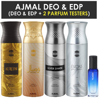 Ajmal Aurum & Wisal & Silver Shade & Evokesilver Edition Homme Deo Each 200Ml & Yearn  Edp 20Ml Pack Of 5 (Total 820Ml) For Men & Women + 2 Parfum Testers Deodrants for men, women deodrants online, Body deodrants online, Online ladies deodrants, top deodrants for men, mini deodrants online, best mens deodrants, Deodrants & perfumes online, Best Deodrants (Deos) for Men & Women Online, Deodrants & roll on fo Ajmal Product Id : 152144000