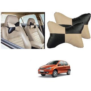 Auto Addict Square Beige Black Neck Rest Cushion Pillow Set Of 2 Pcs For Tata Indica