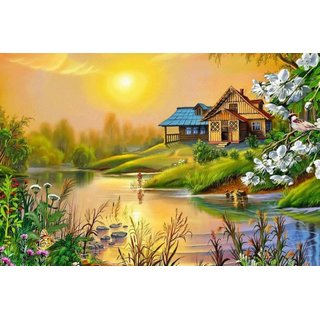 Avikalp Exclusive AZOHP2150 Spring Sun House River Bird Blossoming Trees Full HD Poster Latest Best New 3D Look Beautiful