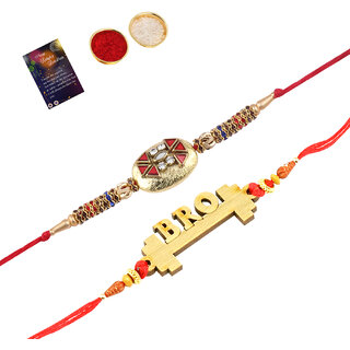 Present a RAKHI CELEBRATION your Brother with this Unique Designer Rakhi .Celebrate Elder brother, Sibling hood (RAKSHABANDHAN) This Year With Amazing Rakhis Designe. Send Your Love And Shower joy to your Brother with this Unique Designer Rakhi . Our exclusive collection have lovely handcrafted Rakhi to complement creative and unique look. 2 Rakhi With Roli Chawal And 2 Raksha Bandhan Greeting Card