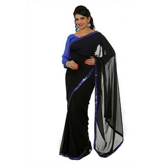Know MoreA beautiful and elegant black georgette saree that would make heads turn. A saree that is simple yet elegant and stunning. The georgette fabric makes it very comfortable to wear and easy to drape. This saree would look stunning on you where ever you go and on any occasion. Redefine beauty with this amazing saree.
