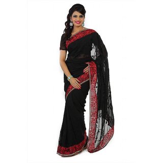 Know MoreLook stunning and elegant wherever you go with this beautiful black saree. The Saree is made of Georgette which makes it comfortable to wear and easy to drape as well. The unique design on the saree adds to the beauty and will definitely make you stand out from the crowd. Look elegant and strikingly beautiful on any occasion with this beautiful Saree.