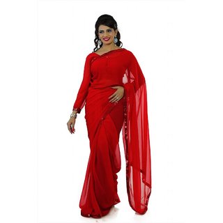Know MoreA red saree is just one of those things which you know would make you look gorgeous. This beautiful georgette saree is made with the finest fabric which makes it comfortable to wear and easy to drape as well. A saree that is simple yet elegant and stunning. So add this to your wardrobe and have it ready to wear.