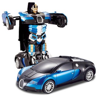 Send your transformer RC car into battle! He transforms into an RC autobot with 360 degree turning ability and says “I’m Powerful and I’m the peace envoy of the earth, let us go for battle for the earth peace” with flashing lights and music. Then, when the battle is won, transform your RC robot back into a Bugatti Veyron RC car with the words “Autobots, transform and roll out”.