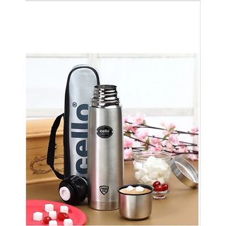 Know MoreCello’s Life style bottle is made of thermos steel technology. With this “Stainless Steel water bottle" from the house of "Cello", you can carry chilled water or your favorited beverage its Superior insulation performance-patented vacuum technology and food grade material keeps beverages Hot/Cold/Fresh for hours. Insulated double walled vacuum Bottle is designed for maximum temperature retention that Keep your favorited hot drinks without altering their temperatures for a prolonged period of time. You can avoid re-heating boiled water hence saves gas, effort and time. Useful especially if you have babies and kids at home where in you have to have hot water handy. The Bottle comes with a smart carry pouch and a convenient carrying strap which makes it convenient to carry it outdoor. The bottle is easy to clean and maintain.