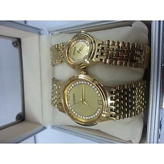 Know MoreCitizen watch for couple stainless steel belt, golden color belt, case and dial studded with diamonds which gives a different attitude to your personality in affordable cost