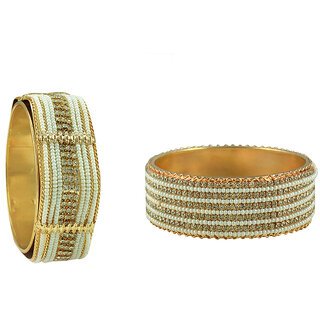 Know More| Combo of 2 single bangles by Sparkling jewellery with great shine and perfect design. one bangle is with outer design and other is plane with pearl and stone. Add this pair to your collection today. |