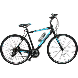 Know MoreCosmic and Peachbag proudly present Cosmic Shuffle 700 C Alloy Special Edition Hybrid Bicycle. The unique and attractive features of this bicycle are - Bicycle Type : Hybrid. Frame Type : Alloy, hybrid. Front Suspension : Steel , Rigid. Rear Suspension : Not Available. Shifter : Shimano Tourney EF51. Front Derailleur : SHimano TZ31. Rear Derailleur : Shimano TX35D. Chain Wheel Crank : Steel. Free Wheel : Shimano TZ21. BB set : Sealed. Pedals : PP Pedals. Rims : 700 C - Alloy. Tires : DSI 700X35C. Seat Post : Alloy. Handle Bar : Steel. Stem : Alloy, Adjustable. Headset : Steel. Brake set : Shimano EF51 Levers with Alloy V-Brakes. Grips : Soft grips. Kick Stand : Steel. Be a proud owner of this amazing bike. Intial assembly by professionals is required. Happy riding!!!