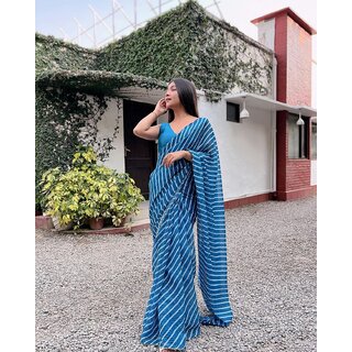 GEORGETTE FABRIC 2 MM CROCHET SEQUENCE WORK WITH BEAUTIFUL DIGITAL PRINT ON SAREE BLOUSE : SATIN SILK FABRIC