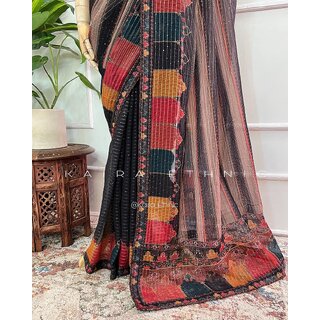 GEORGETTE FABRIC 2 MM CROCHET SEQUENCE WORK WITH BEAUTIFUL DIGITAL PRINT ON SAREE BLOUSE : SATIN SILK FABRIC