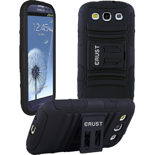 The CRUST Armor Series Hard Back Case Cover not only protects your Samsung Galaxy S3 but also makes it stunningly beautiful. It is a hybrid case cover with the outer layer made of hard polycarbonate to sustain heavy impact and a soft rubberized silicone shell beneath to protect the case from cracking if you happen to drop your smartphone. The CRUST Armor case offers military grade protection for your Samsung Galaxy S3 and can sustain very high impact levels. Never again do you have to worry about your smartphone slipping from your hands as the CRUST Armor Case offers a firm grip and fits comfortably on your device and your palm. It is carefully designed just for your Samsung Galaxy S3 and has precise cut-outs for easy access to the volume keys, power button, charging port and the headphone jack.