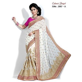 Sarees presents this beige coloured saree, which will make you look striking and even more beautiful. Made of georgette, this saree is quite comfortable to wear and easy to drape as well. This saree measures 5.5 m and it comes with a 0.80 m blouse piece.