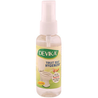 Know MoreToilet seats are one of the most High-traffic germ areas! While Toilet cleaners clean and Hygienize the Toilet bowl,the toilet seat is often left uncleaned or merely cleaned with water. Toilet seats need to be hygienized after every use to prevent transmission of germs or infections. USE DEVIKA TOILET SEAT HYGIENIZER! to protect yourself while hygienising the toilet seat! Before using the Toilet,spray DEVIKA TOILET SEAT HYGIENIZER! on the toilet seat.Use the toilet after about 5 seconds!Spray dries in about 5 seconds! So you think you do not need DEVIKA TOILET SEAT HYGIENIZER! at your home? Try this:Just spray DEVIKA TOILET SEAT HYGIENIZER! in your home toilet & wipe with a tissue paper!You will see the dirt left behind! Available in 60ml Travel Pack & 200ml Home Pack