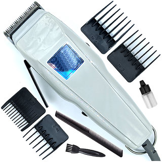 Know MorePowerful corded 9W hair clipper and trimmer with 4 length settings in one pack. A complete grooming kit which can trim your hair and beard from 0.8mm, 3mm, 6mm, 9mm & 12mm. Corded ultra trim grooming kit gives you the power of precision with complete versatility for all of your grooming needs. With this trimmer in hand, you don’t have to worry about looking shabby. It’s designed to take care of your beard and shape it effortlessly. The Ultra Trim Bread Trimmer comes with 4 guide comb (3mm, 6mm, 19mm, 12mm) to give you the flexibility of different lengths and precise trimming. Corde, can be used as much time you want. Simple plug and play. Washable and removable, the cutting head can be simply changed and cleaned up under the faucet. Ergonomic design fits in your hand, with a grip that gives you precision control. Self-sharpening technology for trimming blades. High-Speed Drive: Linear Motor Drive. Silver Pd Alloy Motor of High Moving Speed. Motor Speed: 2,500 RPM.Voltage: 110-240V Power consumption: 9W. Frequency: 50Hz. Materials: ABS Plastic + Stainless Steel. Washing Mode: Pull out shaving head and wash Directly through Water. Package Content : 1 pcs Beard Trimmer + 4 Adjustable Guide Comb (3mm, 6mm, 9mm, 12mm) + 1 pcs Cleaning Brush + 1 pcs Lubricating Oil + 1 Comb + 1Scissor. 1 year Replacement Warranty.