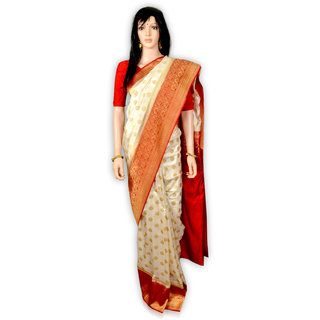 Know MoreDurga Puja Special Offwhite Red Par Zari Work Bengal Gorgeous Saree