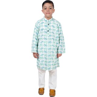 Know MoreEmbark on a stylish adventure with the Elephant Expedition: Kurta and Pajama Set for Boy Kids. This adorable set features a vibrant elephant print on a comfortable kurta and matching pajama, perfect for little explorers. Made from soft and breathable fabric, this set ensures a cozy fit and feel, whether he's lounging around or playing outside. The classic kurta design with a relaxed fit and V-neckline creates a stylish and traditional look, while the elephant print adds a fun and playful touch. Perfect for everyday wear or special occasions, this elephant expedition set is a great way to add some excitement to his wardrobe.