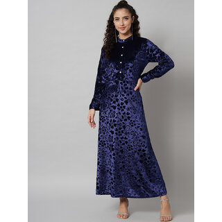 Know MoreBlue Collar Printed Velvet long dress for women and girls made by Elizy.