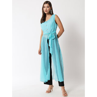 Know MoreElizy women cyan dotted georgette sleeveless front slit dress