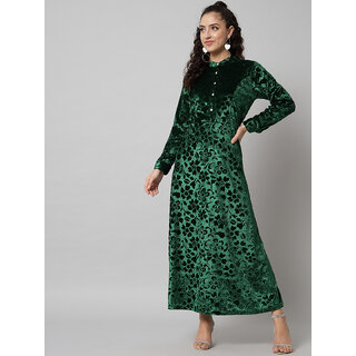 Know MoreGreen Collar Printed Velvet long dress for women and girls made by Elizy.