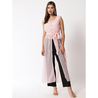 Know MoreElizy Women Peach Dotted Georgette Sleeveless Front Slit Dress