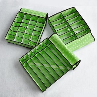 Know MoreMaterial: Non Woven Bamboo charcoal fabric to prevent smell over time storage. Fulfils all your storage needs including storage for Socks, Inner wear, Watches, T-Shirts, Scarfs, Lingerie etc. 24 Slot Organiser: Breadth 37 x Length 27 x Height 11 CM 12 Slot Organiser: Breadth 37 x Length 27 x Height 11 CM 7 Slot Organiser: Breadth 37 x Length 27 x Height 11 CM
