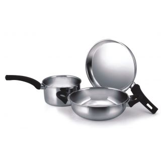 Cook with ease in this 3 piece set from Fabiano. In silver colour, it is crafted from superior quality stainless steel material, which makes it a must have cookware for every kitchen. The set consists of a kadai, a frying pan, a sauce pan.