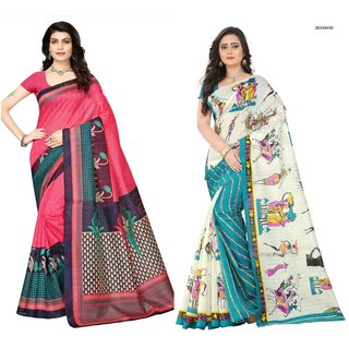 Know MoreFabwomen Sarees Floral Print Multi Coloured Cotton Silk Traditional Festive Wear Women's Sarees Combo.(Set of 2). The hottest colour play of this season, this stunner is vibrant in Multicolor. The subtle patterns in the bright Cotton Silk blouse are complemented by Print on the Cotton Silk fabric. Style Tip: For an elegant look, pair this saree with statement earrings & high heels. For a contemporary look, style your blouse in corset style that will accentuate your curves. For a stylish corporate look, choose a collar neck blouse that will lend a formal look to your saree Material & Care: Cotton Silk. Dry clean only. Size & Fit: Length: Over 5.5 meters + Shoulder design length: 2 meters Width: 112 cm + Blouse piece: 80 cm + Border throughout saree