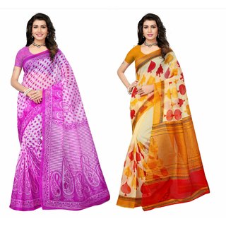 Fabwomen Sarees Floral Print Multi Coloured Net Traditional Festive Wear Women's Sarees Combo.(Set of 2). A saree has an inherently feminine and timeless appeal about it. When you splash it with a pretty multi-colored floral print, you get a saree that's a real looker. Own the social scene in this Supernet hard saree combo. Just when you think things can't get better, these sarees have regal look. These sarees are now available in a combo at a special discounted rate.