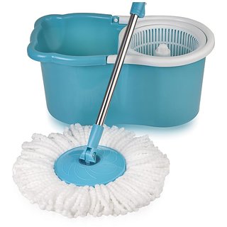 Know MoreGala Aqua 360 Degree Spin Mop Color : Blue & White Inclusive of : 1 pc bucket, 1 pc stainless steel handle, 1 pc refill Material : Bucket Body : Plastic , Mop Rod : Stainless Steel , Refill : Microfibre. Type : Wet and Dry Mop Bucket Mop Dimension ( L X B X H in CM ) : 45.5 x 25 x 21.5 , Rod is telescopic. Features : Super spin system makes Drying Refill Faster Micro Fiber Refill with Super Absorbent Capacity Offers Superior Cleaning Performance. 360 degree cleaning, reaches under furniture and hard to reach areas Spout helps in letting go dirty water from the bucket without dirtying your hands.