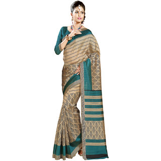 Product Name : Gerbera Designer Amazing Bhagalpuri Silk Beige and Green Designer Printed Saree
