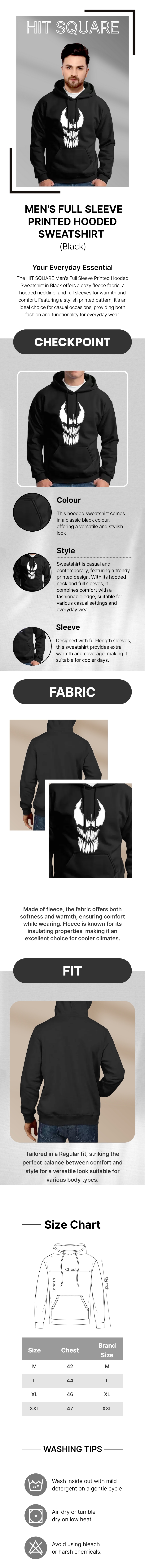 1- Colour: This hooded sweatshirt comes in a classic black colour, offering a versatile and stylish look.