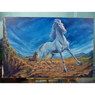 Know MoreHorse in full speed running and stons breaking by hoofs of horse time is early morning.canvas sretch on the wooden frame.