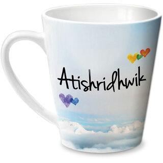 A beautiful conical mug with personalised message "Simply Love you" on one side of the mug and " Atishridhwik " on the other side of the mugSuperb gift for someone you love. Shall add to the sweet memories every day.Original and exclusive designs by Hot Muggs. Do away with the hassles of unpleasant designs related to personalized merchandise. A gift for Atishridhwik from you.Material: Ceramic, Color: Multicolor; Dimensions (cms.): 12x10x11, Capacity: 350ml. Contents: One (1) Mug. Dishwasher safe. Microwave safe. FAQs - (Q): I can't find the name I want. Can you make a mug of that for me? (A): First, we recommend that you search for the name you want. Ex.: If you need a mug with name "Rahul" search for Rahul Mug. In case not found, contact us by the "Contact the Seller" link on the product page. (Q): Can I put a different design for the mug? (A): No. Currently, we are not able to take that request.Ideal as a valentine gift for someone you love. Love Mugs for the celebration of love.