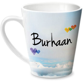 A beautiful conical mug with personalised message "Simply Love you" on one side of the mug and " Burhaan " on the other side of the mugSuperb gift for someone you love. Shall add to the sweet memories every day.Original and exclusive designs by Hot Muggs. Do away with the hassles of unpleasant designs related to personalized merchandise. A gift for Burhaan from you.Material: Ceramic, Color: Multicolor; Dimensions (cms.): 12x10x11, Capacity: 350ml. Contents: One (1) Mug. Dishwasher safe. Microwave safe. FAQs - (Q): I can't find the name I want. Can you make a mug of that for me? (A): First, we recommend that you search for the name you want. Ex.: If you need a mug with name "Rahul" search for Rahul Mug. In case not found, contact us by the "Contact the Seller" link on the product page. (Q): Can I put a different design for the mug? (A): No. Currently, we are not able to take that request.Ideal as a valentine gift for someone you love. Love Mugs for the celebration of love.