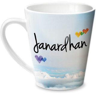 A beautiful conical mug with personalised message "Simply Love you" on one side of the mug and " Janardhan " on the other side of the mugSuperb gift for someone you love. Shall add to the sweet memories every day.Original and exclusive designs by Hot Muggs. Do away with the hassles of unpleasant designs related to personalized merchandise. A gift for Janardhan from you.Material: Ceramic, Color: Multicolor; Dimensions (cms.): 12x10x11, Capacity: 350ml. Contents: One (1) Mug. Dishwasher safe. Microwave safe. FAQs - (Q): I can't find the name I want. Can you make a mug of that for me? (A): First, we recommend that you search for the name you want. Ex.: If you need a mug with name "Rahul" search for Rahul Mug. In case not found, contact us by the "Contact the Seller" link on the product page. (Q): Can I put a different design for the mug? (A): No. Currently, we are not able to take that request.Ideal as a valentine gift for someone you love. Love Mugs for the celebration of love.
