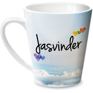 A beautiful conical mug with personalised message "Simply Love you" on one side of the mug and " Jasvinder " on the other side of the mugSuperb gift for someone you love. Shall add to the sweet memories every day.Original and exclusive designs by Hot Muggs. Do away with the hassles of unpleasant designs related to personalized merchandise. A gift for Jasvinder from you.Material: Ceramic, Color: Multicolor; Dimensions (cms.): 12x10x11, Capacity: 350ml. Contents: One (1) Mug. Dishwasher safe. Microwave safe. FAQs - (Q): I can't find the name I want. Can you make a mug of that for me? (A): First, we recommend that you search for the name you want. Ex.: If you need a mug with name "Rahul" search for Rahul Mug. In case not found, contact us by the "Contact the Seller" link on the product page. (Q): Can I put a different design for the mug? (A): No. Currently, we are not able to take that request.Ideal as a valentine gift for someone you love. Love Mugs for the celebration of love.