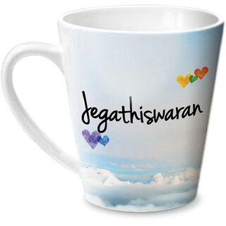 A beautiful conical mug with personalised message "Simply Love you" on one side of the mug and " Jegathiswaran " on the other side of the mugSuperb gift for someone you love. Shall add to the sweet memories every day.Original and exclusive designs by Hot Muggs. Do away with the hassles of unpleasant designs related to personalized merchandise. A gift for Jegathiswaran from you.Material: Ceramic, Color: Multicolor; Dimensions (cms.): 12x10x11, Capacity: 350ml. Contents: One (1) Mug. Dishwasher safe. Microwave safe. FAQs - (Q): I can't find the name I want. Can you make a mug of that for me? (A): First, we recommend that you search for the name you want. Ex.: If you need a mug with name "Rahul" search for Rahul Mug. In case not found, contact us by the "Contact the Seller" link on the product page. (Q): Can I put a different design for the mug? (A): No. Currently, we are not able to take that request.Ideal as a valentine gift for someone you love. Love Mugs for the celebration of love.
