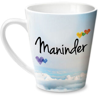 A beautiful conical mug with personalised message "Simply Love you" on one side of the mug and " Maninder " on the other side of the mugSuperb gift for someone you love. Shall add to the sweet memories every day.Original and exclusive designs by Hot Muggs. Do away with the hassles of unpleasant designs related to personalized merchandise. A gift for Maninder from you.Material: Ceramic, Color: Multicolor; Dimensions (cms.): 12x10x11, Capacity: 350ml. Contents: One (1) Mug. Dishwasher safe. Microwave safe. FAQs - (Q): I can't find the name I want. Can you make a mug of that for me? (A): First, we recommend that you search for the name you want. Ex.: If you need a mug with name "Rahul" search for Rahul Mug. In case not found, contact us by the "Contact the Seller" link on the product page. (Q): Can I put a different design for the mug? (A): No. Currently, we are not able to take that request.Ideal as a valentine gift for someone you love. Love Mugs for the celebration of love.