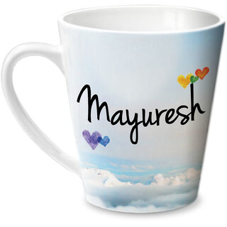 A beautiful conical mug with personalised message "Simply Love you" on one side of the mug and " Mayuresh " on the other side of the mugSuperb gift for someone you love. Shall add to the sweet memories every day.Original and exclusive designs by Hot Muggs. Do away with the hassles of unpleasant designs related to personalized merchandise. A gift for Mayuresh from you.Material: Ceramic, Color: Multicolor; Dimensions (cms.): 12x10x11, Capacity: 350ml. Contents: One (1) Mug. Dishwasher safe. Microwave safe. FAQs - (Q): I can't find the name I want. Can you make a mug of that for me? (A): First, we recommend that you search for the name you want. Ex.: If you need a mug with name "Rahul" search for Rahul Mug. In case not found, contact us by the "Contact the Seller" link on the product page. (Q): Can I put a different design for the mug? (A): No. Currently, we are not able to take that request.Ideal as a valentine gift for someone you love. Love Mugs for the celebration of love.