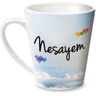 A beautiful conical mug with personalised message "Simply Love you" on one side of the mug and " Nesayem " on the other side of the mugSuperb gift for someone you love. Shall add to the sweet memories every day.Original and exclusive designs by Hot Muggs. Do away with the hassles of unpleasant designs related to personalized merchandise. A gift for Nesayem from you.Material: Ceramic, Color: Multicolor; Dimensions (cms.): 12x10x11, Capacity: 350ml. Contents: One (1) Mug. Dishwasher safe. Microwave safe. FAQs - (Q): I can't find the name I want. Can you make a mug of that for me? (A): First, we recommend that you search for the name you want. Ex.: If you need a mug with name "Rahul" search for Rahul Mug. In case not found, contact us by the "Contact the Seller" link on the product page. (Q): Can I put a different design for the mug? (A): No. Currently, we are not able to take that request.Ideal as a valentine gift for someone you love. Love Mugs for the celebration of love.