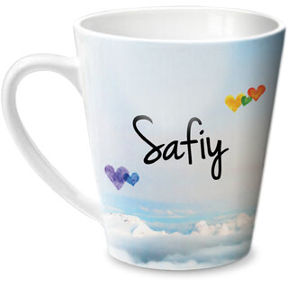 A beautiful conical mug with personalised message "Simply Love you" on one side of the mug and " Safiy " on the other side of the mugSuperb gift for someone you love. Shall add to the sweet memories every day.Original and exclusive designs by Hot Muggs. Do away with the hassles of unpleasant designs related to personalized merchandise. A gift for Safiy from you.Material: Ceramic, Color: Multicolor; Dimensions (cms.): 12x10x11, Capacity: 350ml. Contents: One (1) Mug. Dishwasher safe. Microwave safe. FAQs - (Q): I can't find the name I want. Can you make a mug of that for me? (A): First, we recommend that you search for the name you want. Ex.: If you need a mug with name "Rahul" search for Rahul Mug. In case not found, contact us by the "Contact the Seller" link on the product page. (Q): Can I put a different design for the mug? (A): No. Currently, we are not able to take that request.Ideal as a valentine gift for someone you love. Love Mugs for the celebration of love.