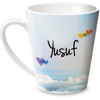 A beautiful conical mug with personalised message "Simply Love you" on one side of the mug and " Yusuf " on the other side of the mugSuperb gift for someone you love. Shall add to the sweet memories every day.Original and exclusive designs by Hot Muggs. Do away with the hassles of unpleasant designs related to personalized merchandise. A gift for Yusuf from you.Material: Ceramic, Color: Multicolor; Dimensions (cms.): 12x10x11, Capacity: 350ml. Contents: One (1) Mug. Dishwasher safe. Microwave safe. FAQs - (Q): I can't find the name I want. Can you make a mug of that for me? (A): First, we recommend that you search for the name you want. Ex.: If you need a mug with name "Rahul" search for Rahul Mug. In case not found, contact us by the "Contact the Seller" link on the product page. (Q): Can I put a different design for the mug? (A): No. Currently, we are not able to take that request.Ideal as a valentine gift for someone you love. Love Mugs for the celebration of love.