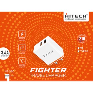 Know MoreHITECH NEW LAUNCH FIGHTER HT-39C 18W 3.4A DUAL USB AUTO-DETECT TECHNOLOGY WITH 1.2 METER V8/TYPE-V8 DATA CABLE HIGH SPEED CHARGING POWER ADAPTOR COMPATIBLE WITH MOBILE PHONES, TABLETS & OTHER DEVICES CHARGER WITH DETACHABLE CABLE AND WARRANTY 180DAYS.