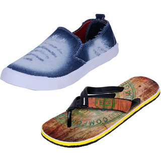 Indistar Mens Multicolored Canvas Sneakers And Haiwaii House Slippers (Pack Of 2)