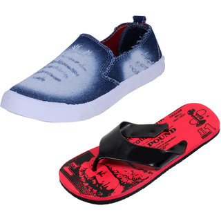 Indistar Mens Multicolored Canvas Sneakers And Haiwaii House Slippers Pack